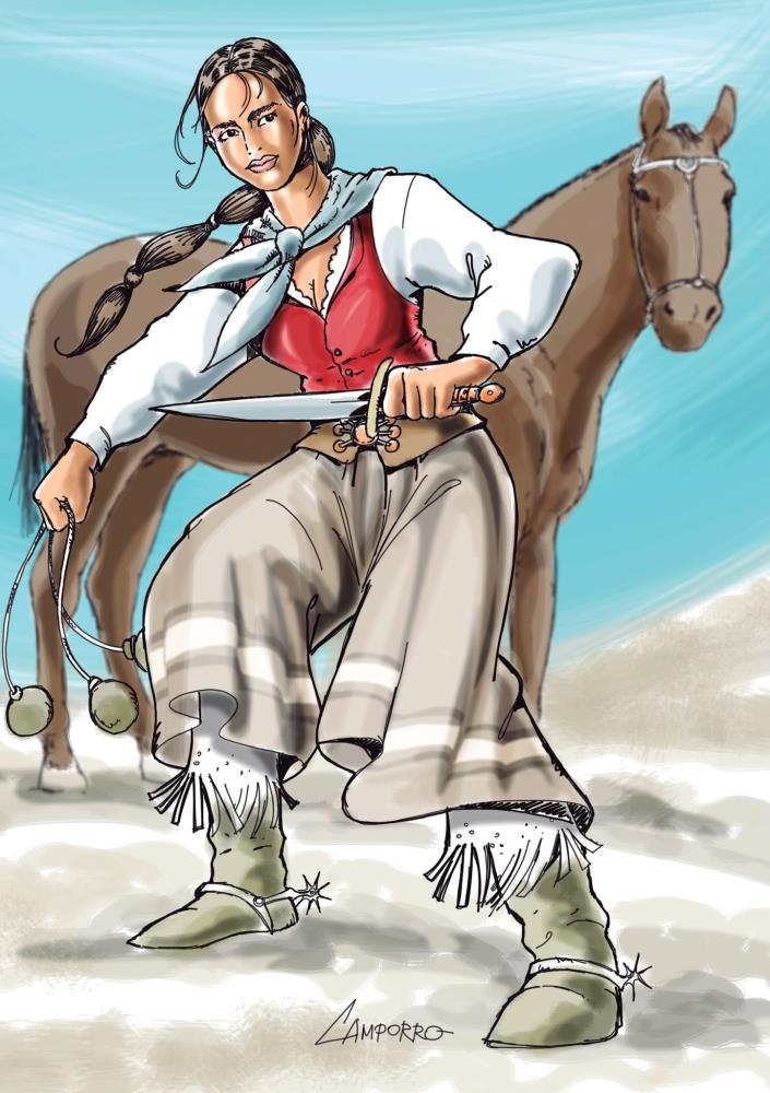 Emancipada de la jefatura del hombre –estamos hablando de principios del siglo XIX- este singular “gaucho hembra”, se convierte en brazo armado de la justicia y en su servicio de policía voluntaria y de “deshacedor de entuertos por campos cuyanos en afán de redimir culpas, nadie como ella maneja el recortado o facón, nadie como ella pelea por la justicia, ni castiga igual la felonía o la traición”, según relata Horacio Videla.