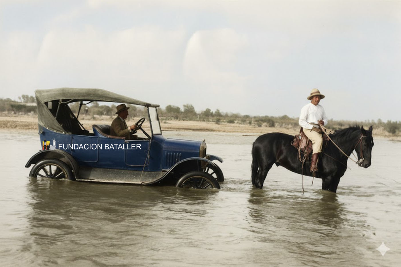 En las márgenes había baqueanos que “cuarteaban” a los coches cuando estos se quedaban estancados en medio del cauce, arrastrándolos mediante el uso de sogas. Por supuesto, cobraban por el servicio.